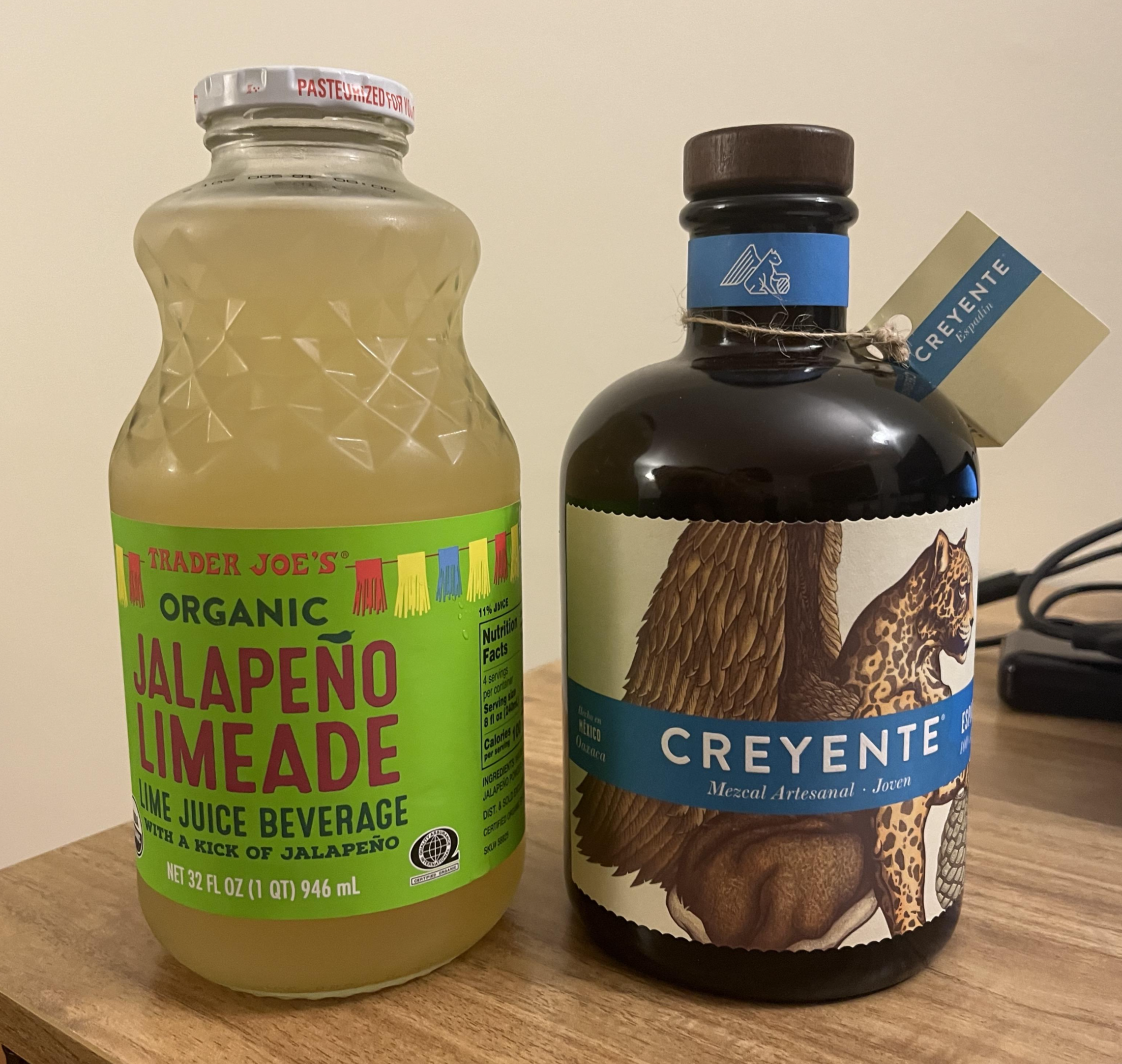 혹시나 메즈칼이 영 맛이 없을 경우에 칵테일을 만들기 위해 트레이더조 '할라피뇨 라임에이드'까지 준비 완료!
