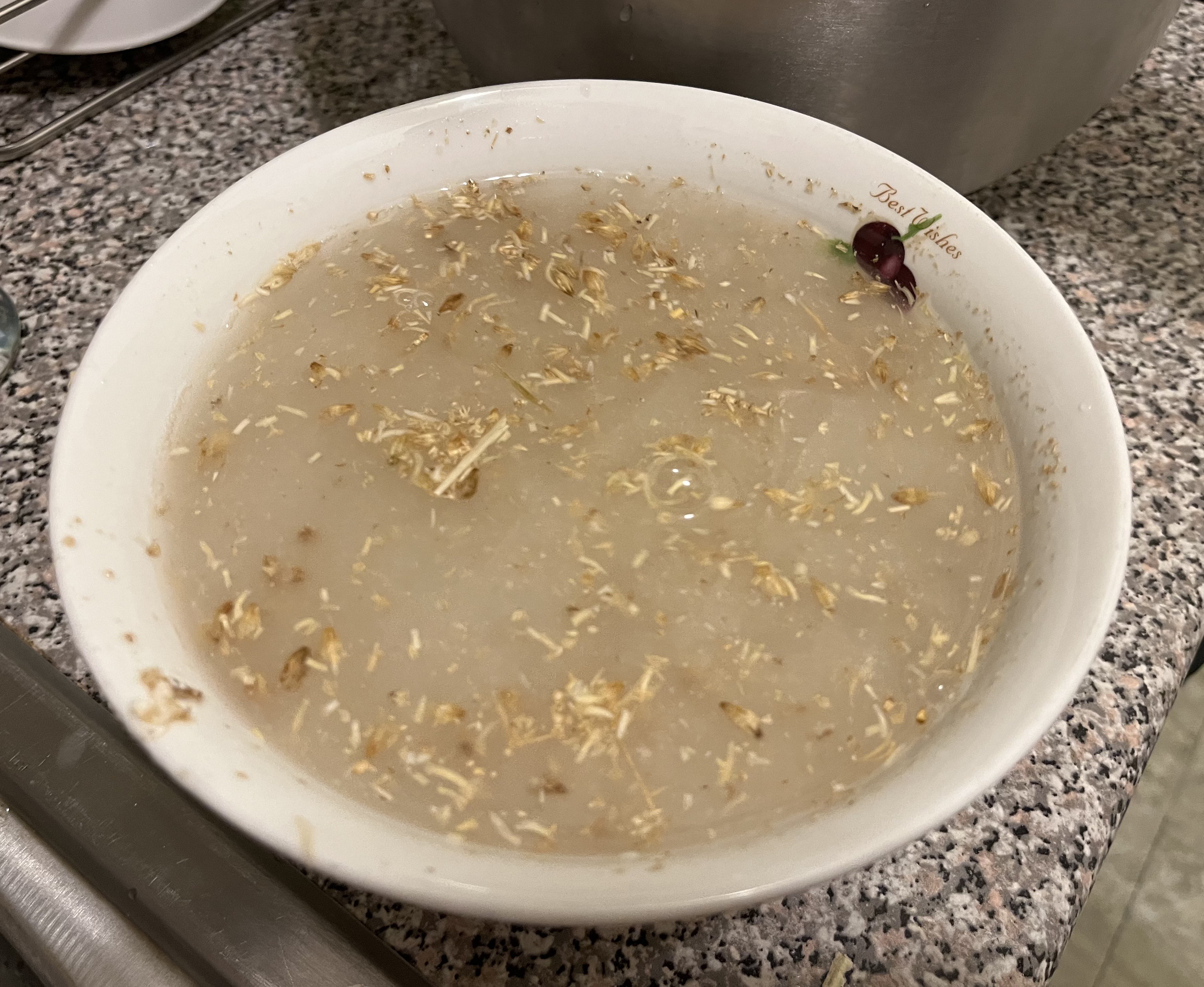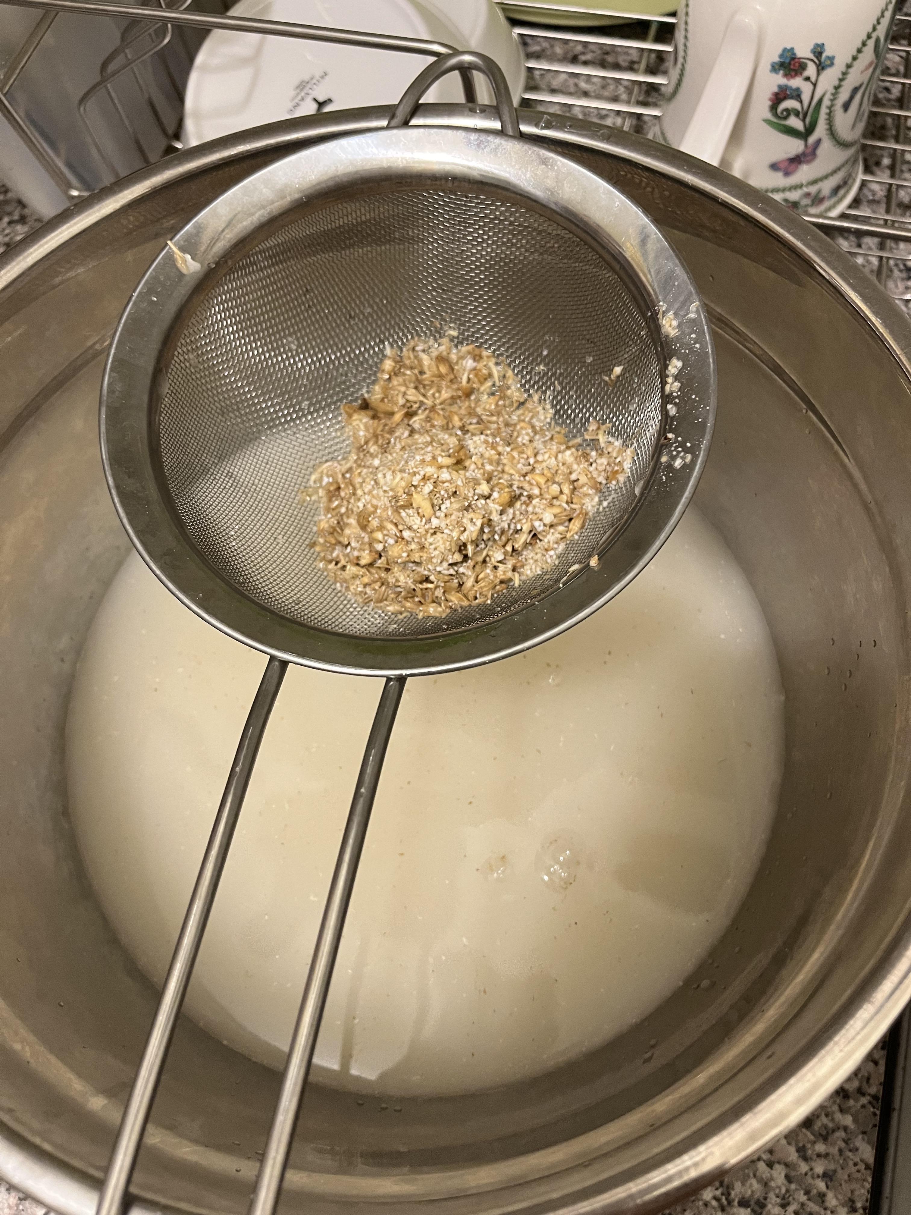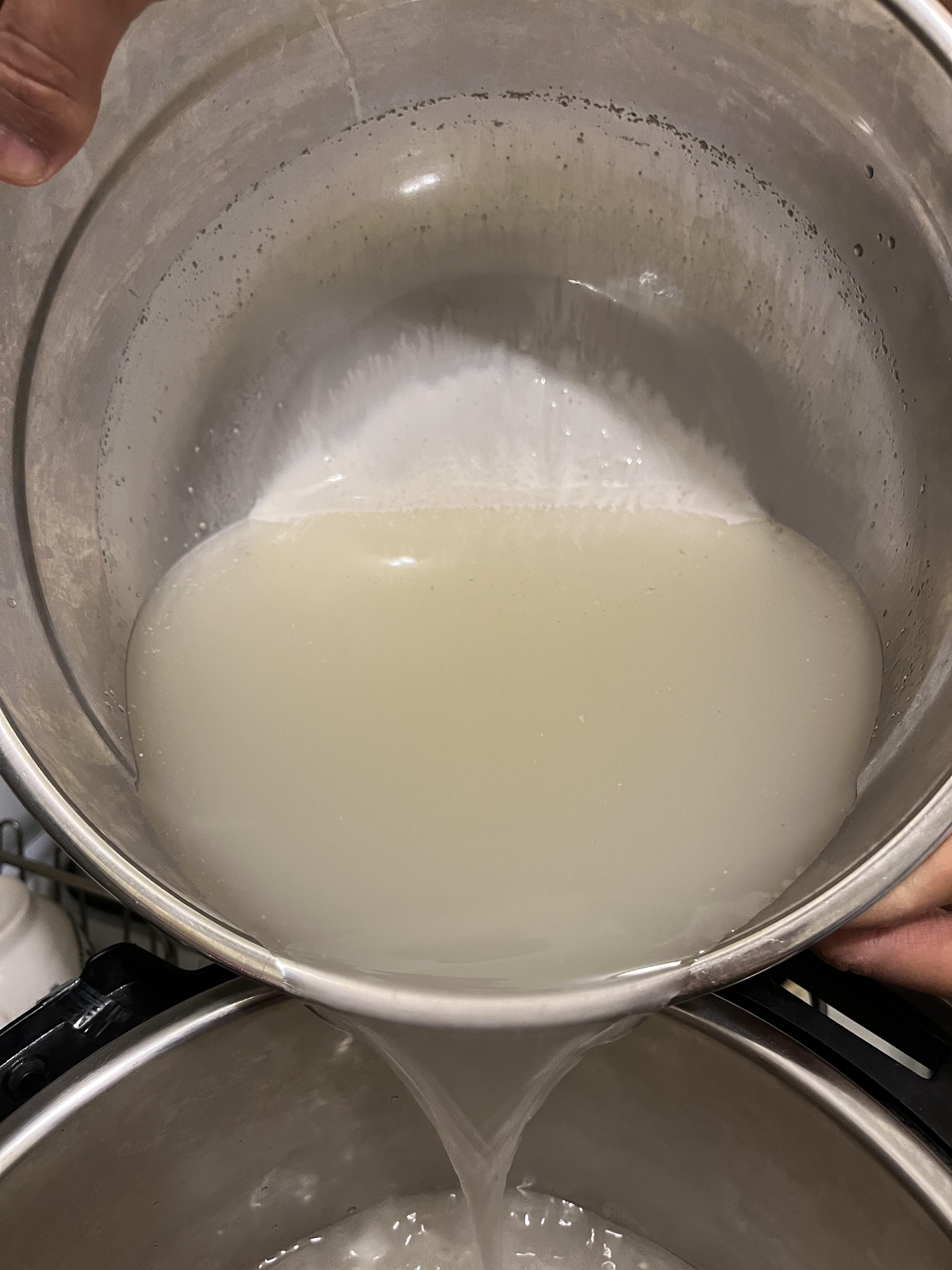 엿기름에서 뽀얀 물이 계속 우러나와서 이 과정을 몇 번 더 반복했습니다.