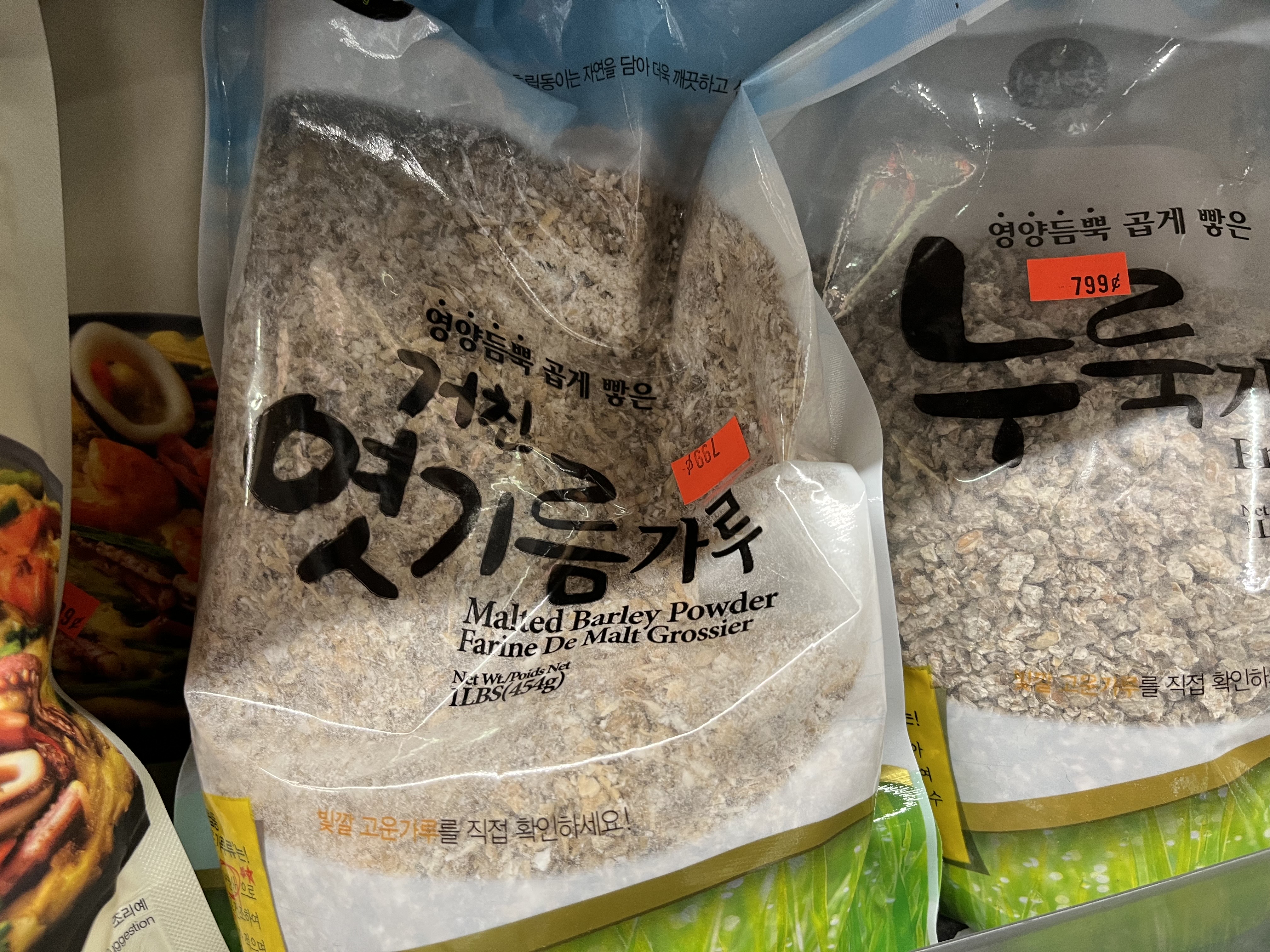 집에 지금 한국 쌀 대신 인도 쌀 (바세마티)만 있긴 하지만 삭히면 맛 다 똑같지 않을까 싶어서 그냥 쓰기로 했고, 관건은 엿기름이었는데요, H마트를 두 바퀴나 돌면서 엿기름을 찾아내었습니다!